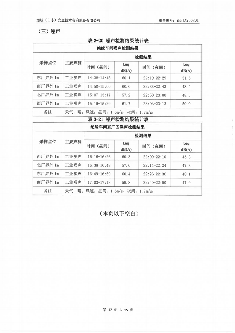 山东泰开电器绝缘有限公司2025年三季度检测报告