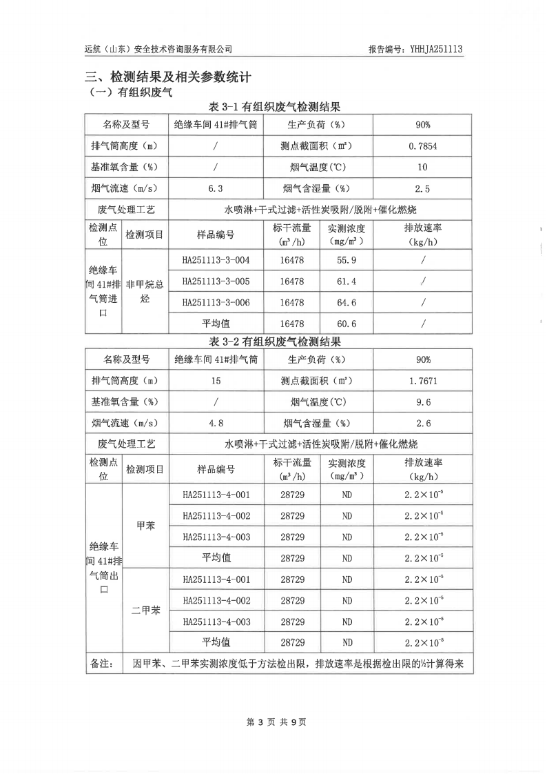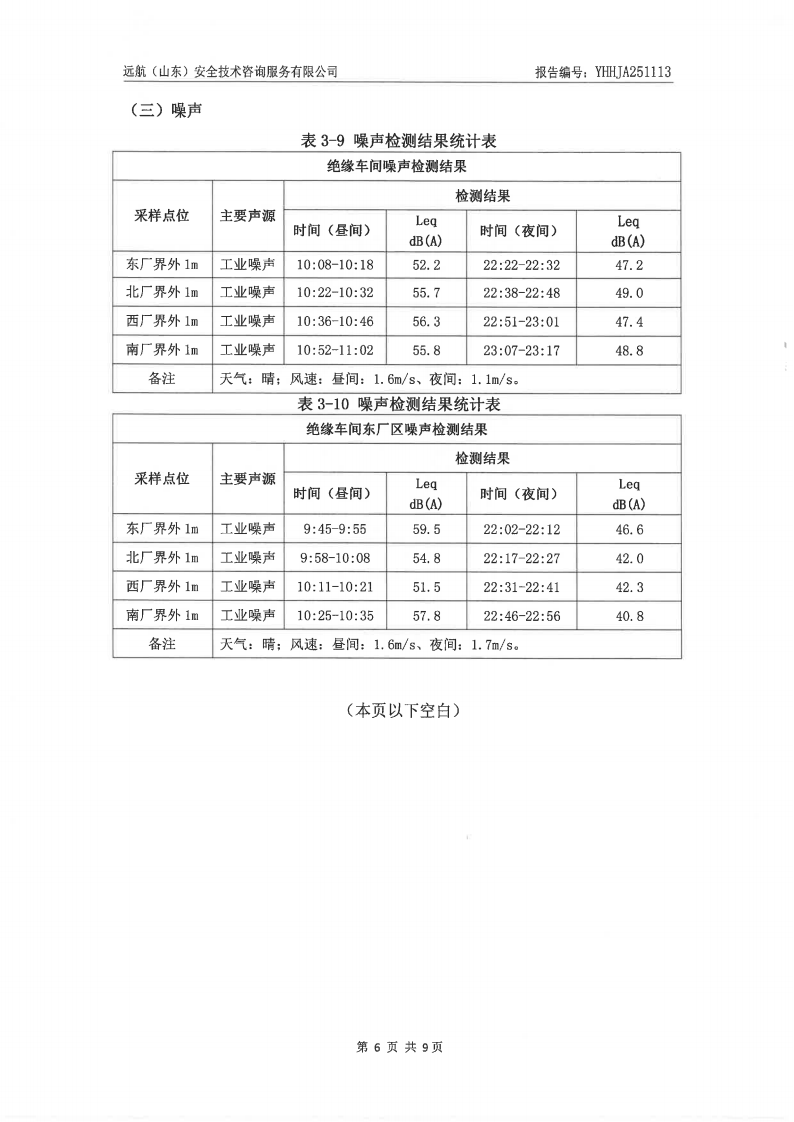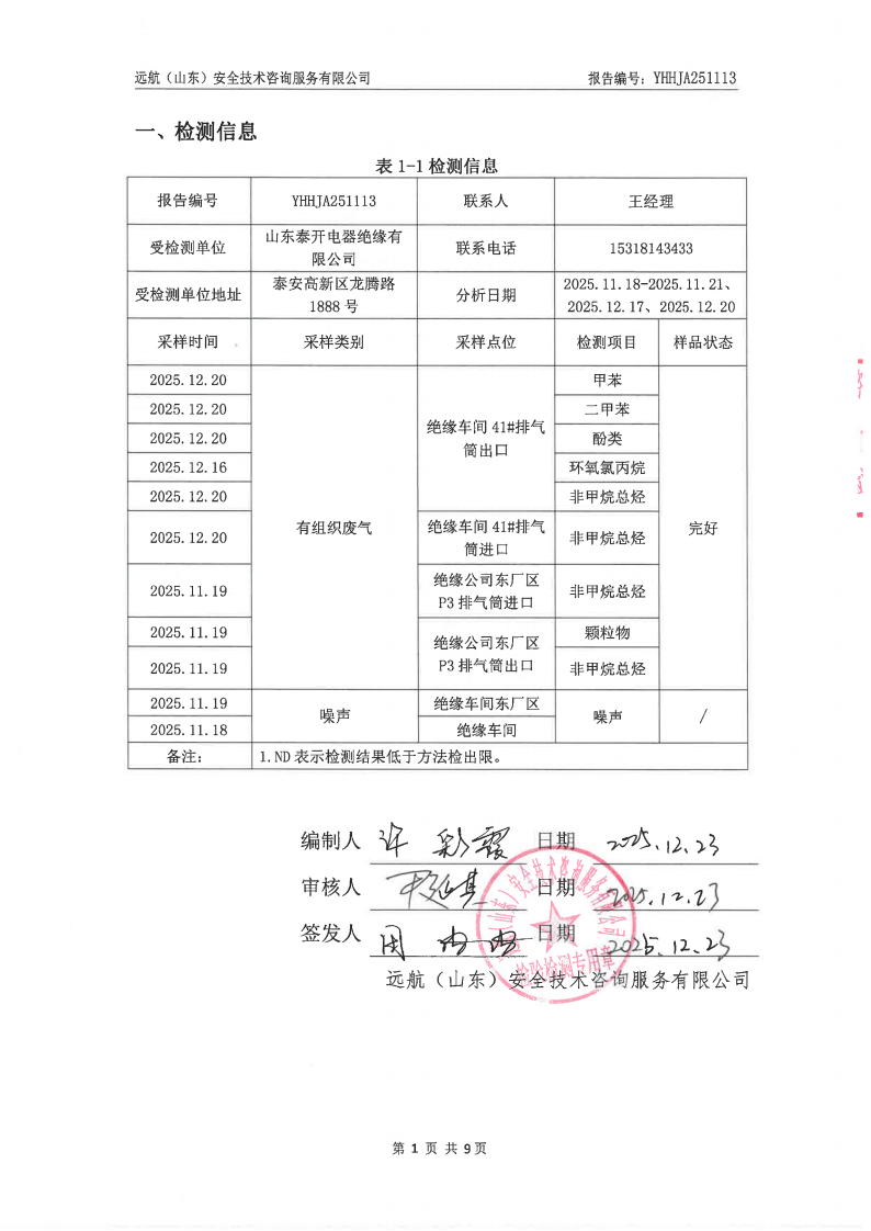 山东泰开电器绝缘有限公司2025年四季度检测报告